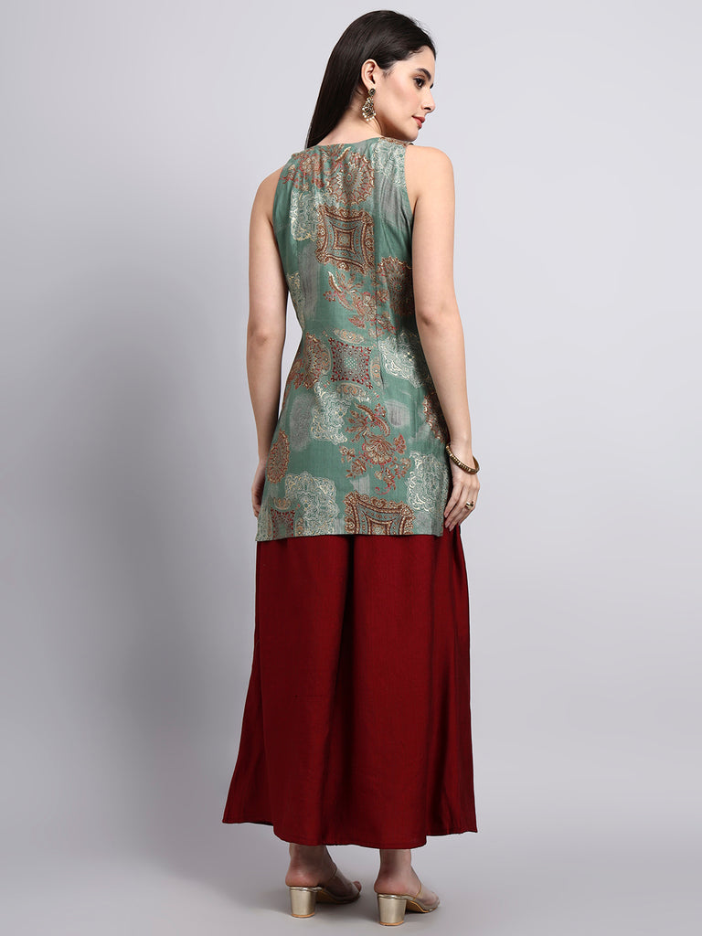 Mehrunisa green & Sleeveless Kurta Set Mehrunisa green & Sleeveless Kurta Set