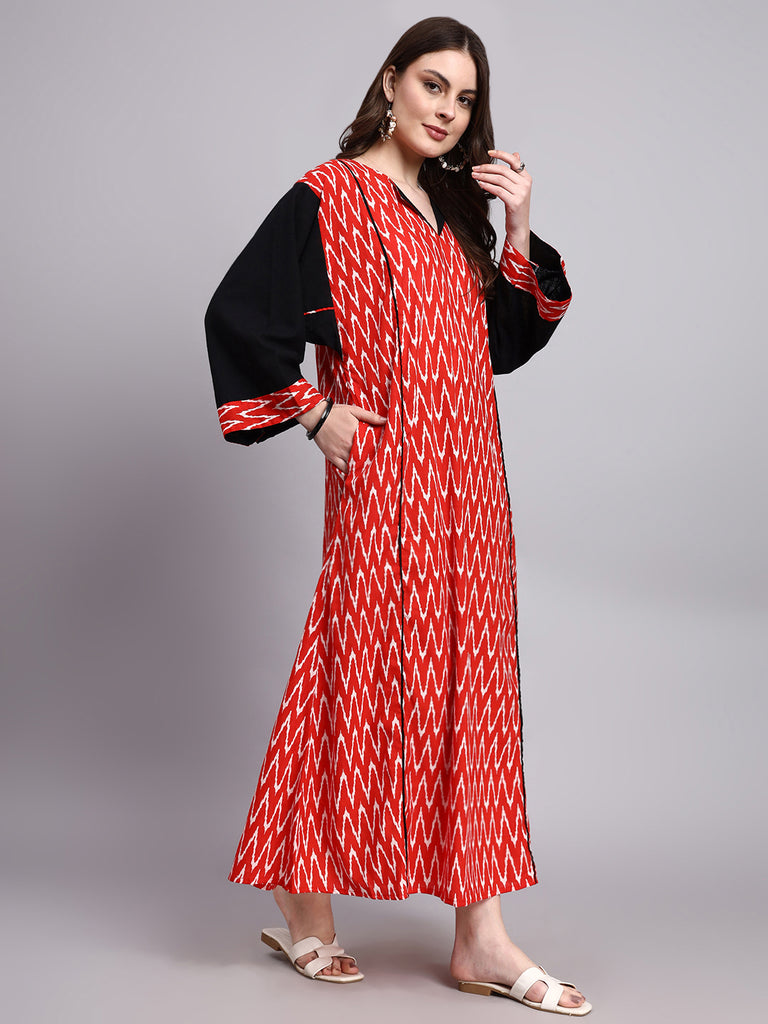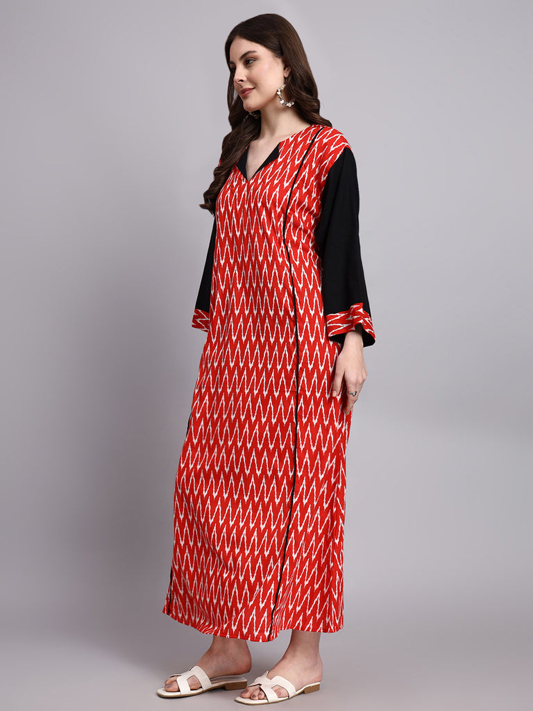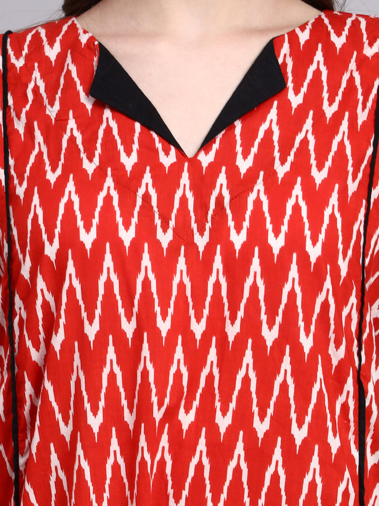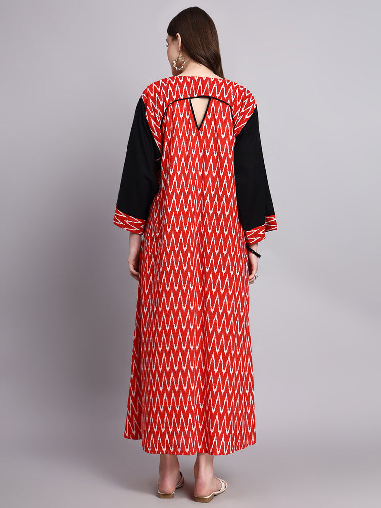 Aarohi Red Ikat Cotton Kaftan Style Nighty Aarohi Red Ikat Cotton Kaftan Style Nighty