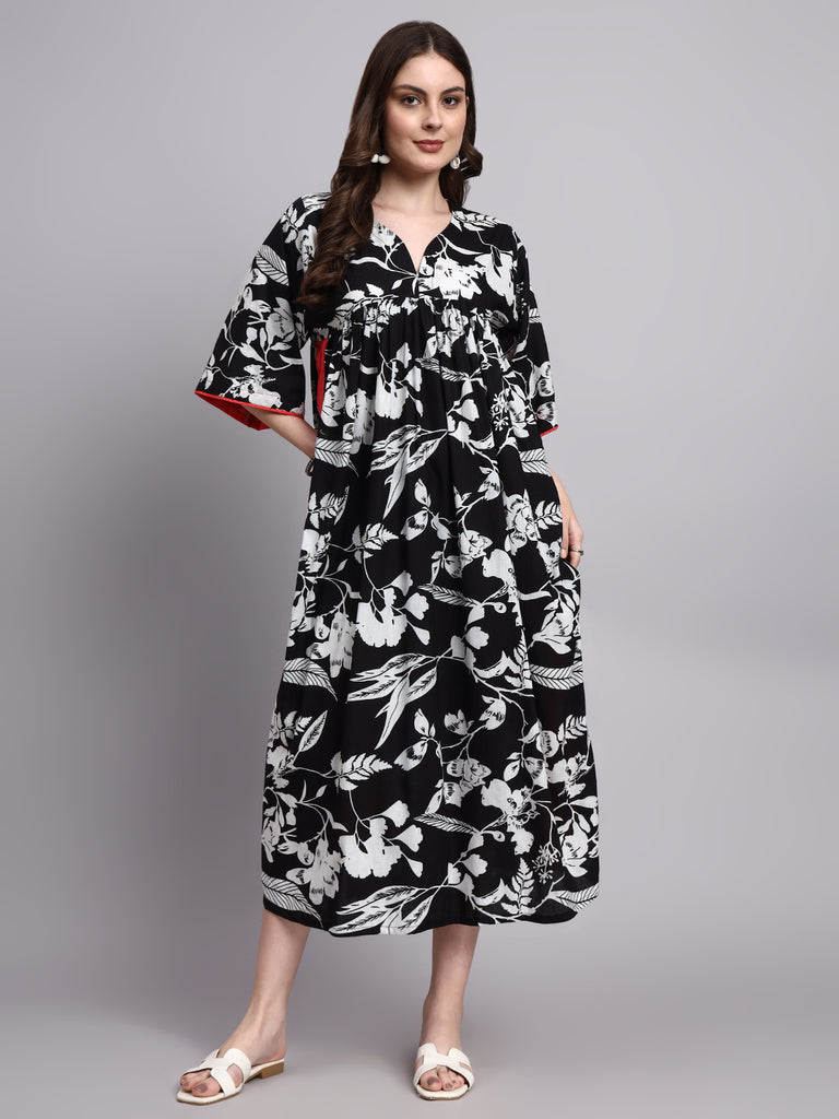 Noir Floral Cotton Kafty Noir Floral Cotton Kafty