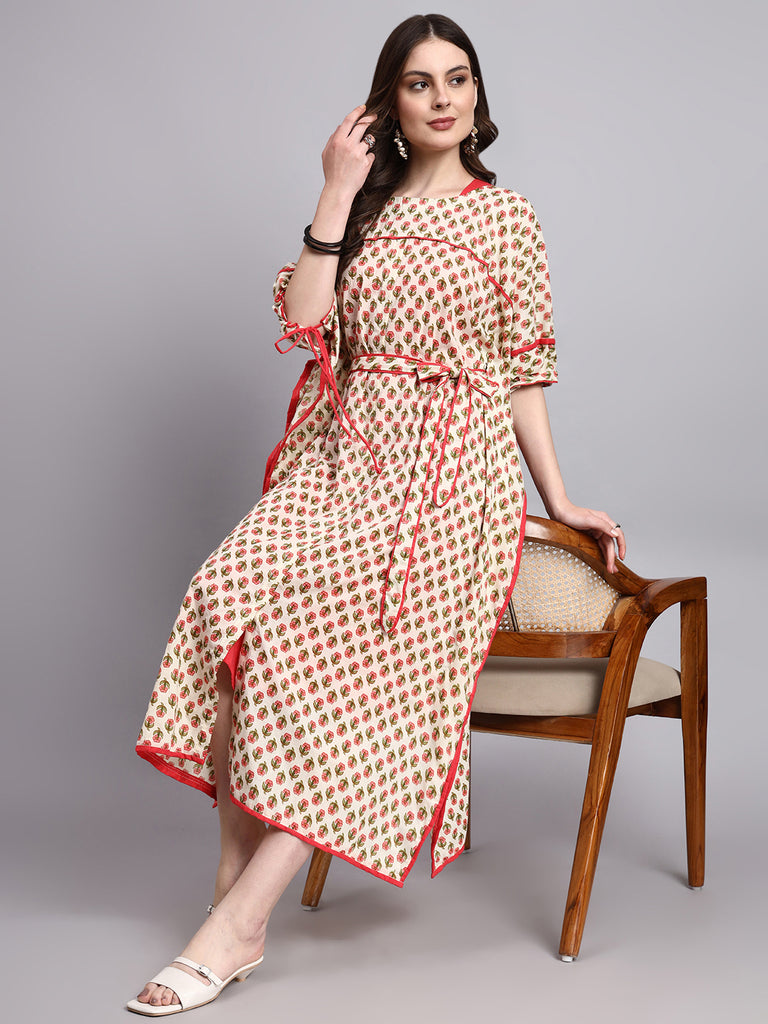 Designed for versatility and thoughtful layering, the Mahira Double Layered Cotton Kafty features a sleeveless inner A-line dress paired with a printed outer kafty overlay. The inner layer offers clean structure and ease, while the outer layer adds softness, movement, and visual interest. A functional waist drawstring allows gentle shaping when worn layered, giving you the flexibility to wear it relaxed or cinched. Both layers can be styled together or worn individually, making Mehra a wardrobe-friendly kafty that adapts seamlessly to your day.