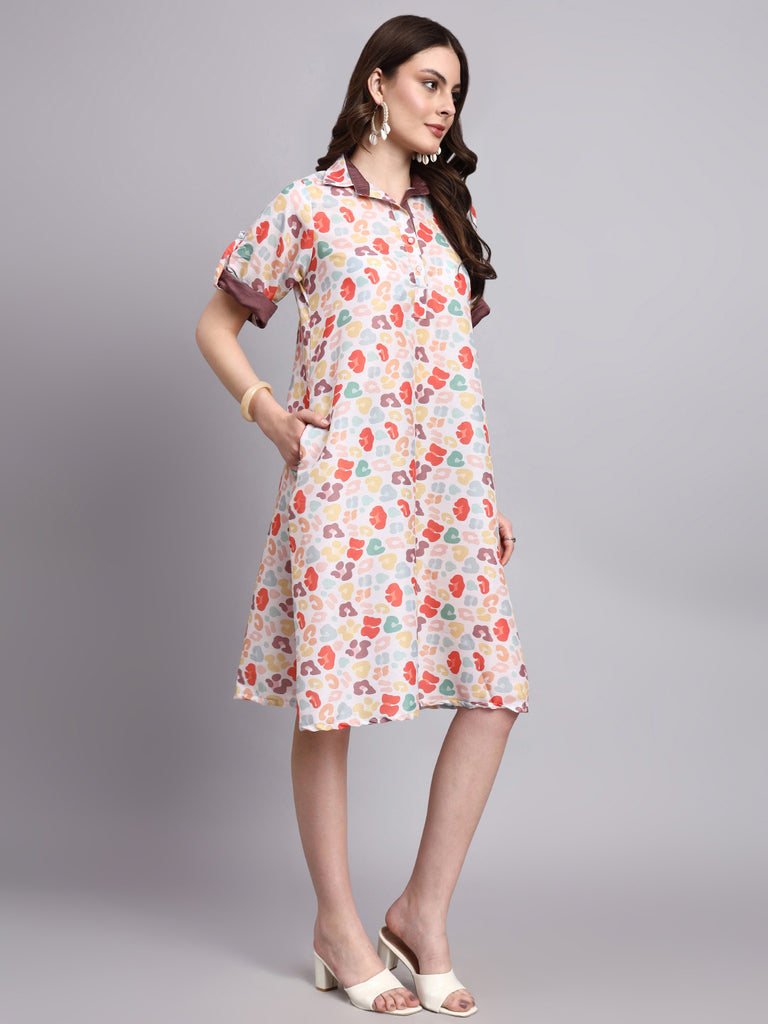 A lightweight muslin blend shirt dress featuring a soft abstract print and a relaxed, easy silhouette. Designed with collared detailing and breathable comfort, Noa is perfect for effortless everyday dressing—from workdays to weekend brunches.