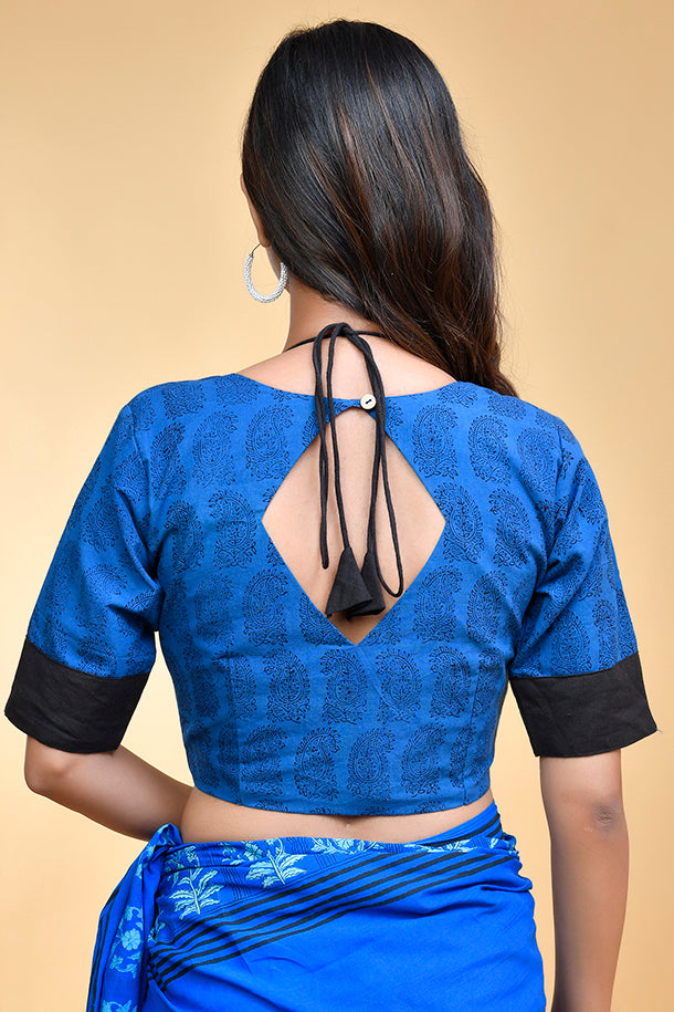 Blue and Black Two-Piece Cotton Blouse with Bagh Hand Block Print Blue and Black Two-Piece Cotton Blouse with Bagh Hand Block Print