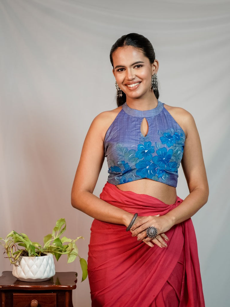 DUAL TONE BLUE SILK HANDPAINTED HALTER NECK BLOUSE DUAL TONE BLUE SILK HANDPAINTED HALTER NECK BLOUSE