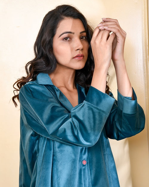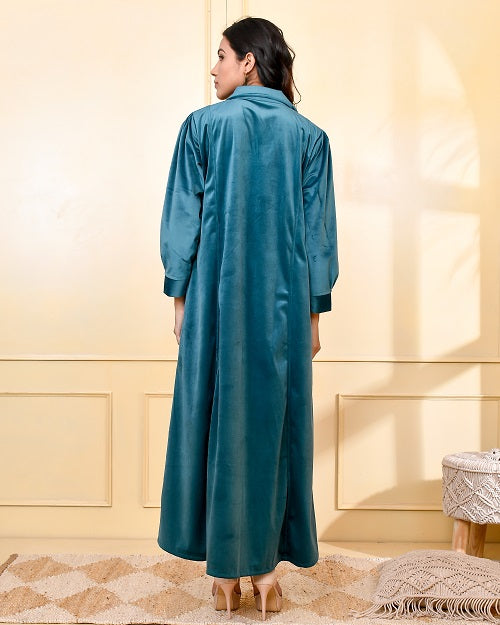 TEAL EMBROIDERED VELVET NIGHTY TEAL EMBROIDERED VELVET NIGHTY