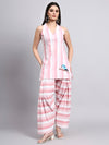 A charming sleeveless kurta in soft pink and white vertical stripes.