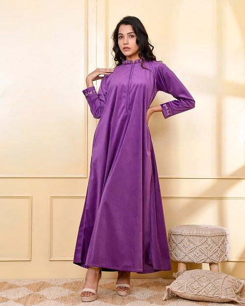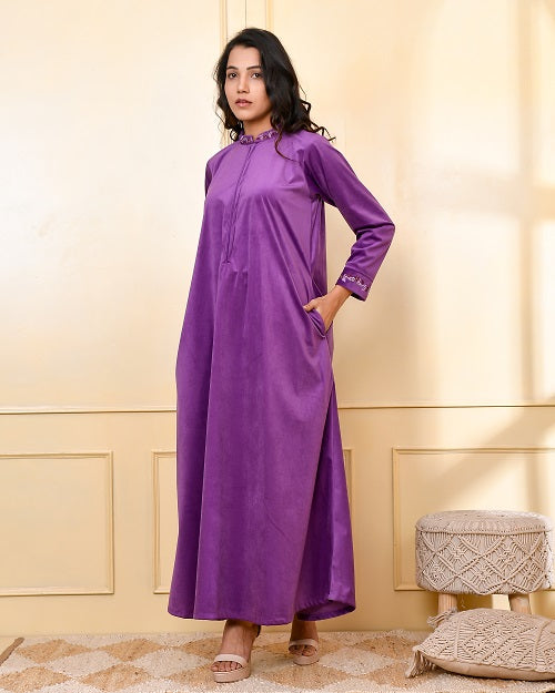 PURPLE EMBROIDERED VELVET NIGHTY PURPLE EMBROIDERED VELVET NIGHTY