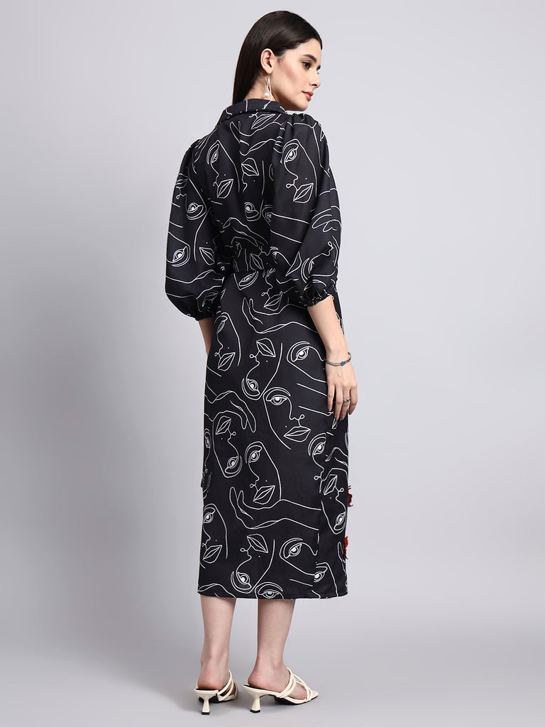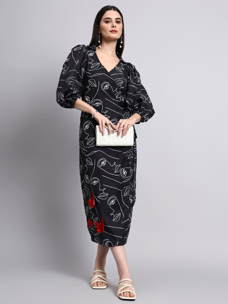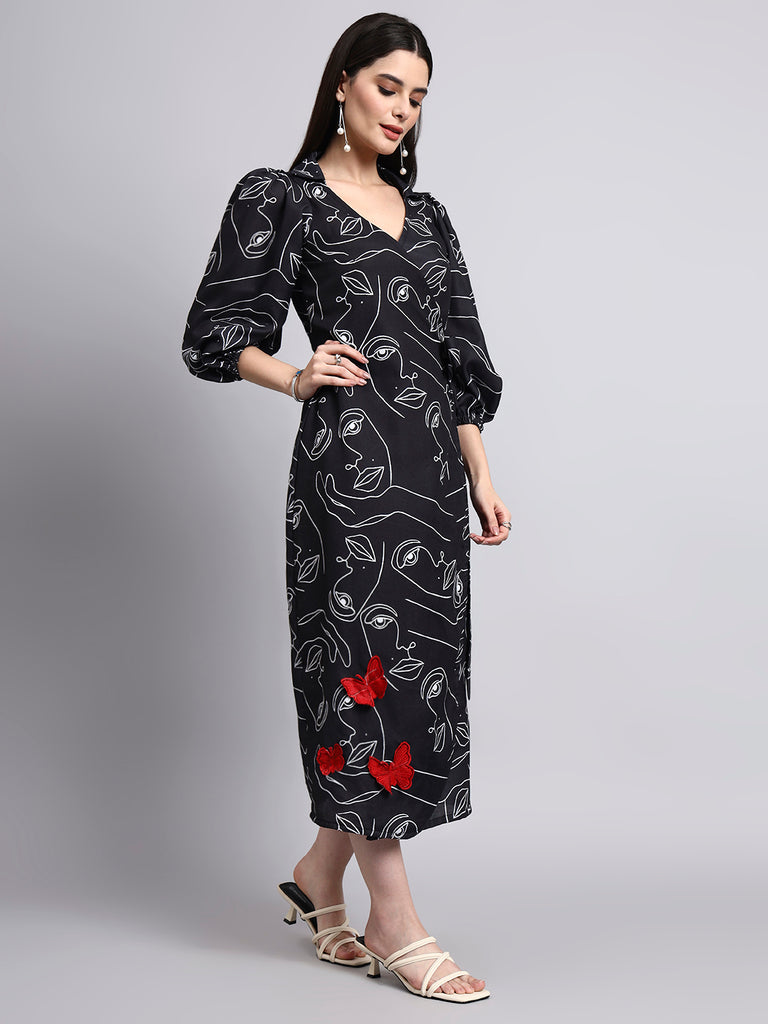 Black Printed Wrap Midi Dress Black Printed Wrap Midi Dress