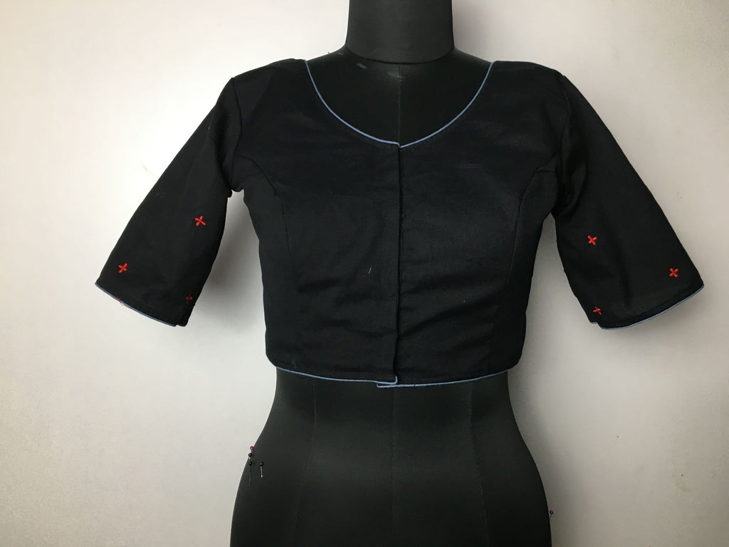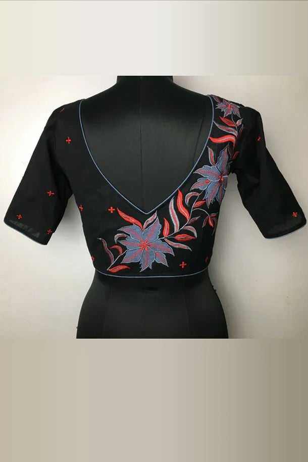 Black Embroidered Cotton Blouse  - thesaffronsaga