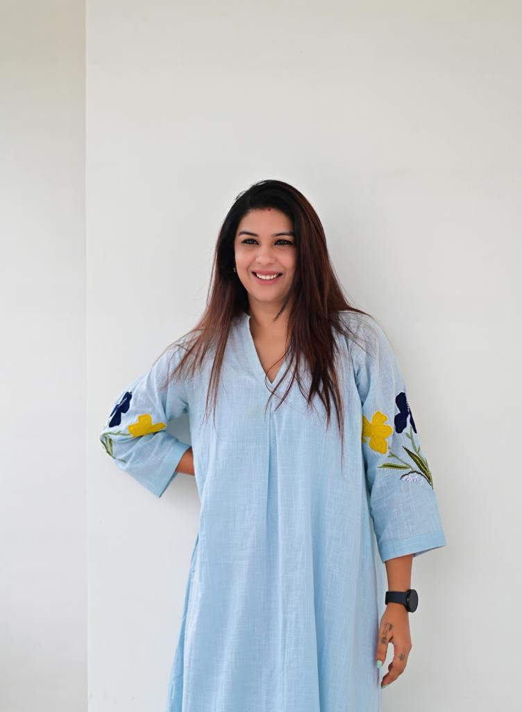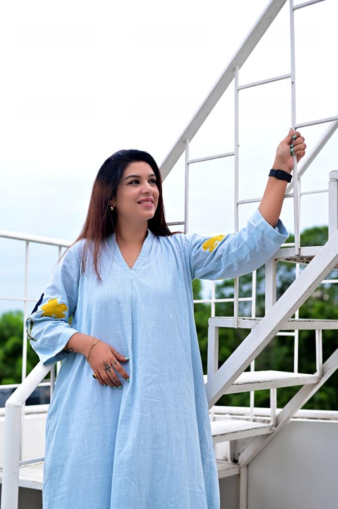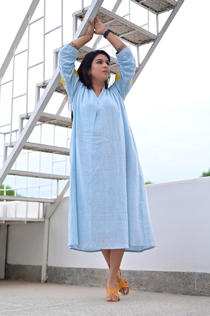 Ice Blue Embroidered Shirt Style Comfort Dress Ice Blue Embroidered Shirt Style Comfort Dress