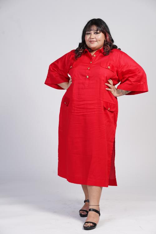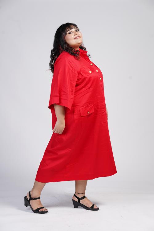 Red Calf Length Shirt Dress Red Calf Length Shirt Dress