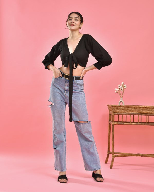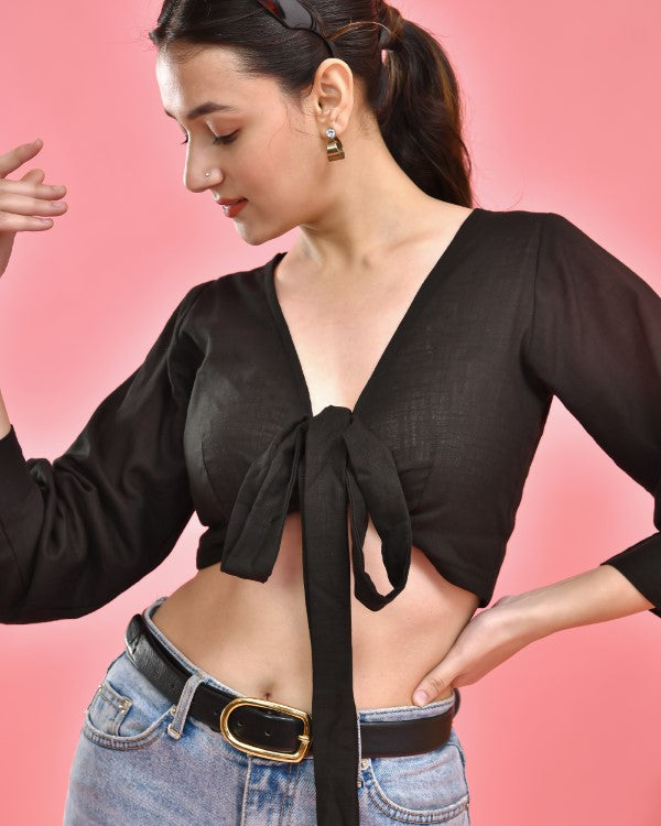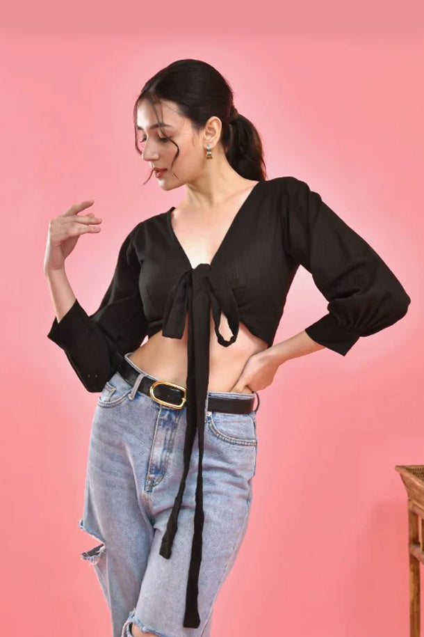 Black Crop Top Blouse Black Crop Top Blouse