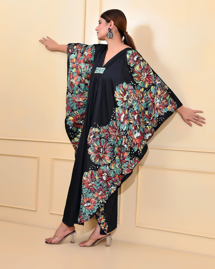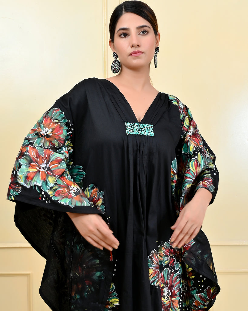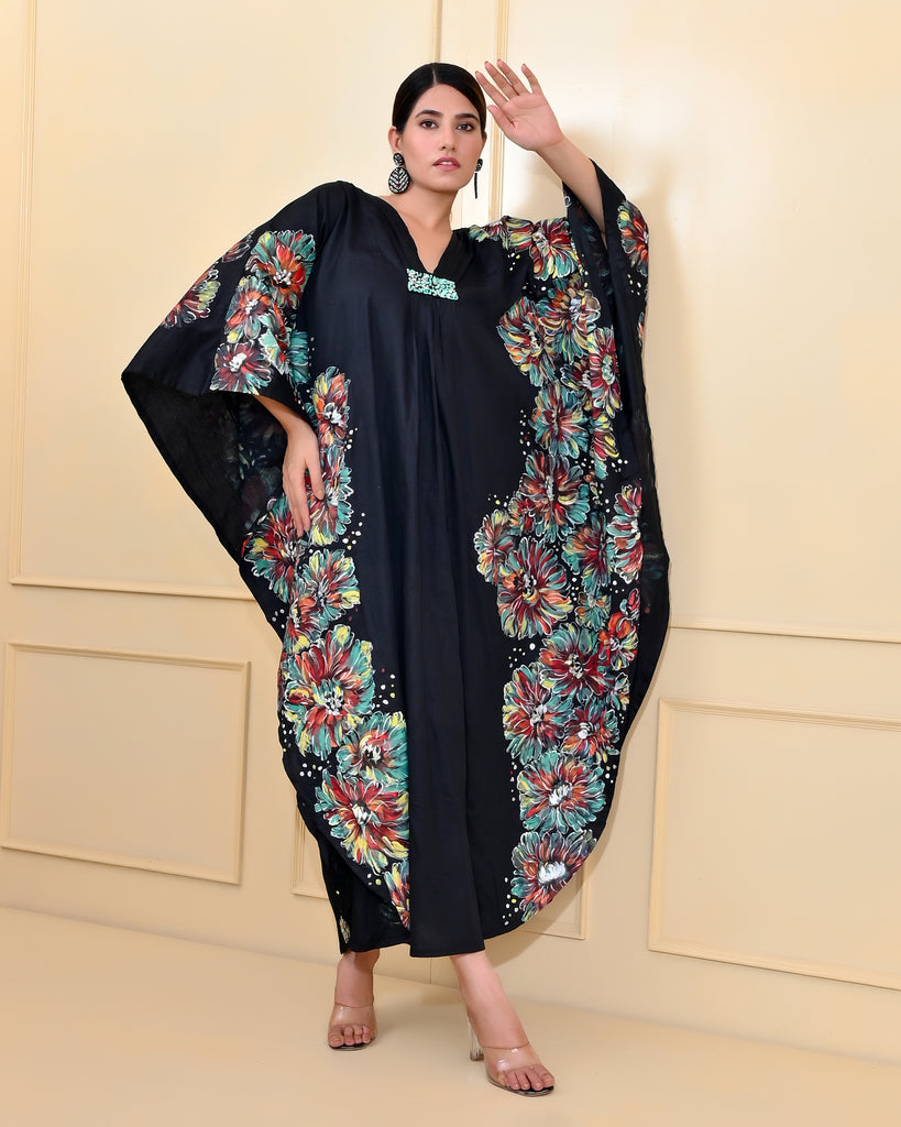 Black Floral Handpainted Designer Luxury Kaftan Black Floral Handpainted Designer Luxury Kaftan