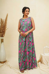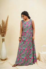 Green Pink Sleeveless Maxi Dress Green Pink Sleeveless Maxi Dress
