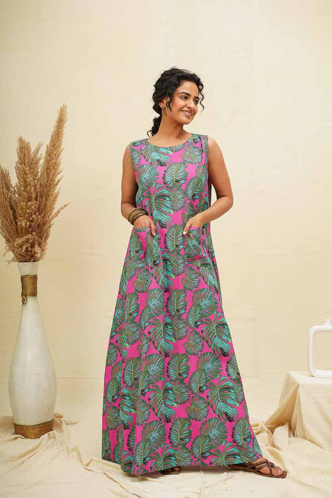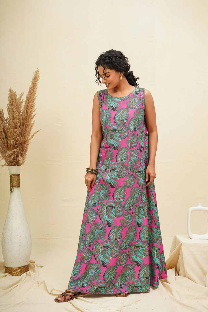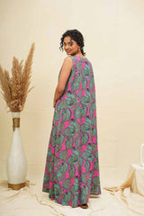 This flowy A line dress is comfortable and classy for the day and roomy and breathable for the night. The minimal and easy silhouettes combined with the rich and vibrant colours of blossoms make these Maxi dresses so versatile and suitable for any wardrobe.