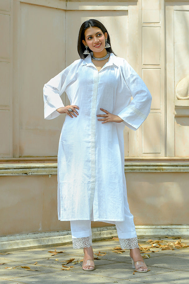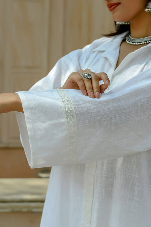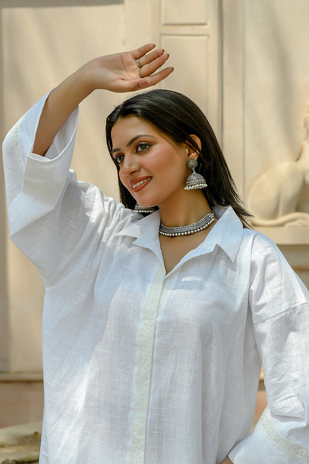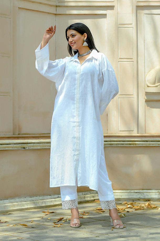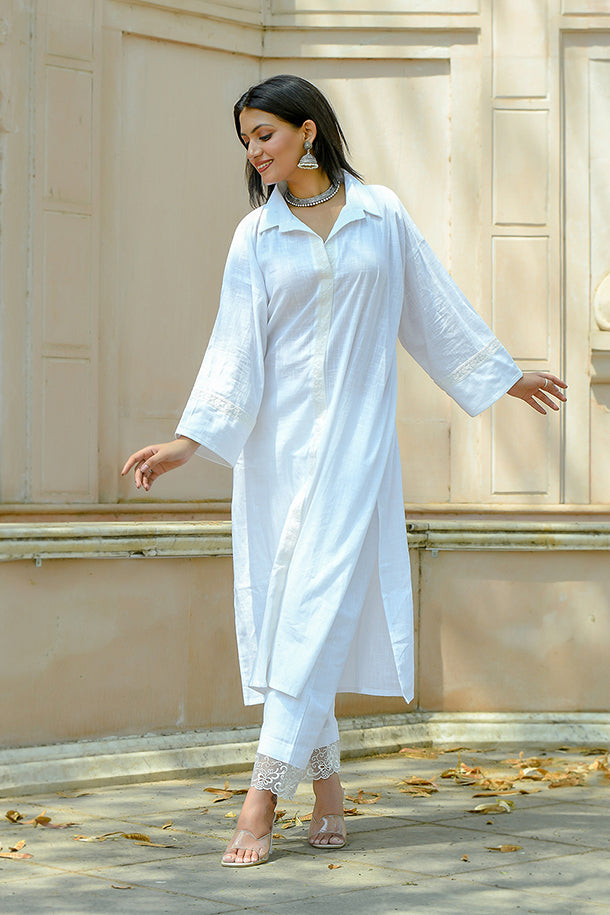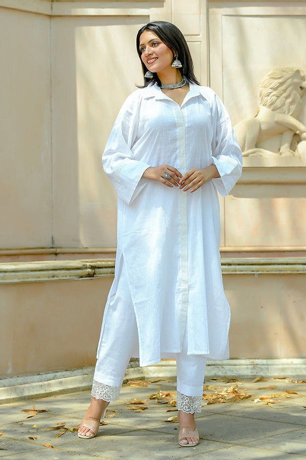 Kamini - White Cotton Kurta Coord Set Kamini - White Cotton Kurta Coord Set
