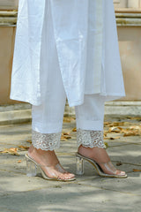Introducing 'Chaandni' - where elegance meets comfort! Dive into a collection of ethereal white cotton kurta sets adorned with delicate laces. Perfect for those who cherish both style and breathability.