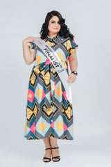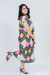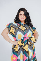Multicoloured Geometric Flared Bow Dress Multicoloured Geometric Flared Bow Dress