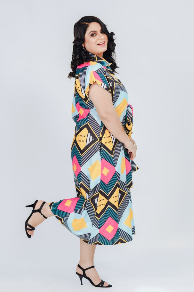 Here’s our stylish and comfortable half and half plus size shirt dress! This versatile piece is designed to flatter and accentuate your curves, offering the perfect blend of fashion and functionality.