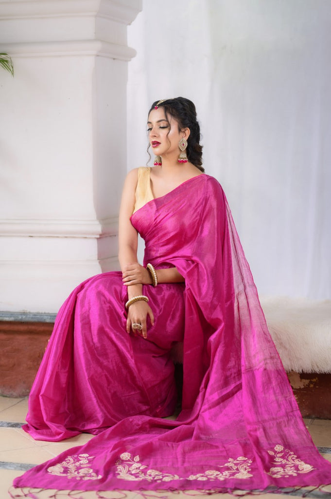 PINK BLOSSOM - MUL TISSUE SAREE PINK BLOSSOM - MUL TISSUE SAREE