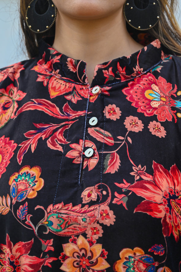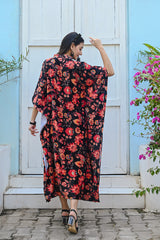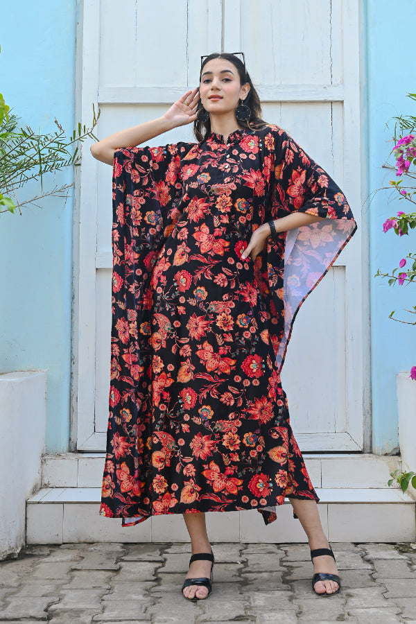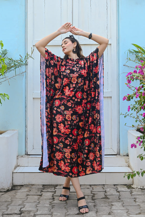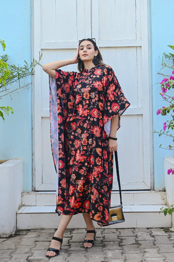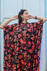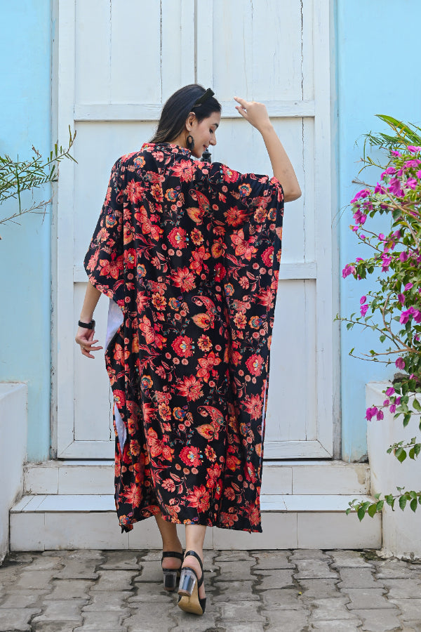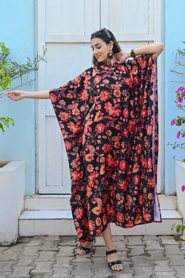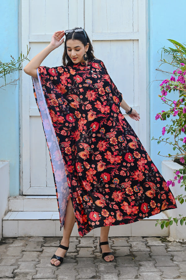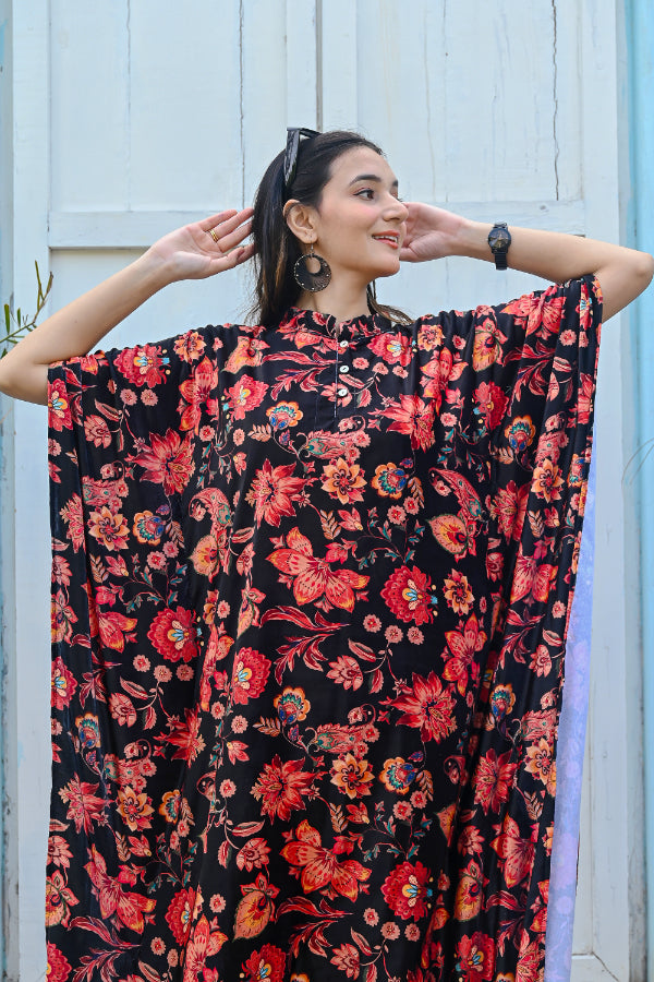 Black Multicoloured Floral Velvet Kaftan Black Multicoloured Floral Velvet Kaftan