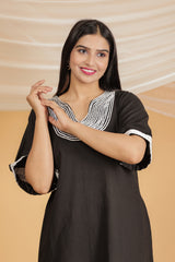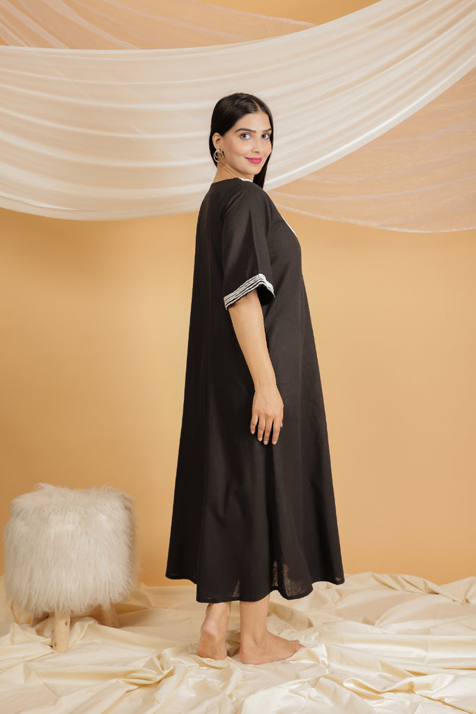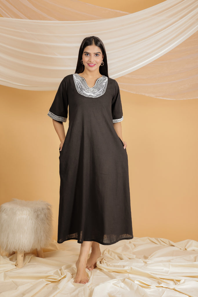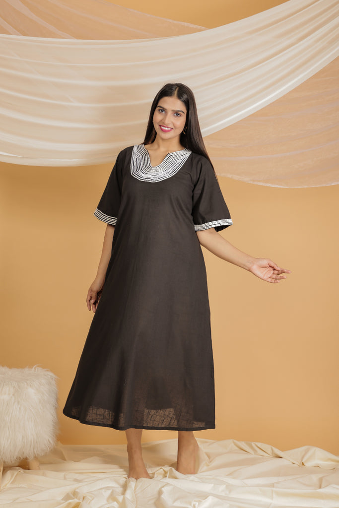 Black & White Embroidered Short Night Dress Black & White Embroidered Short Night Dress