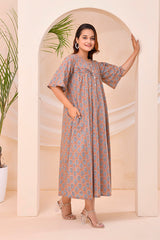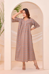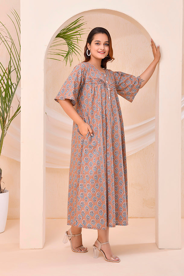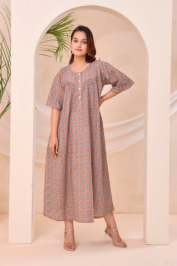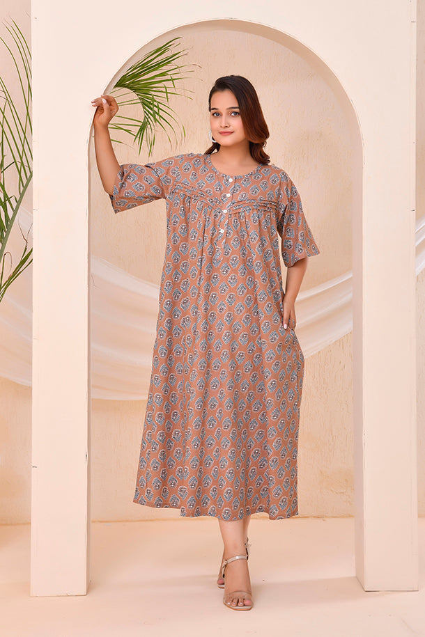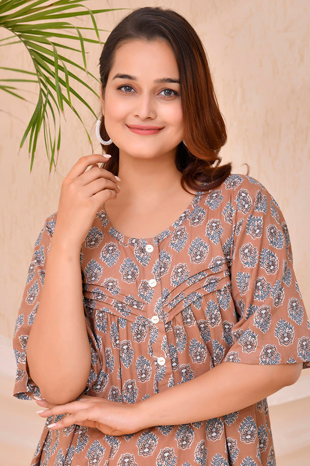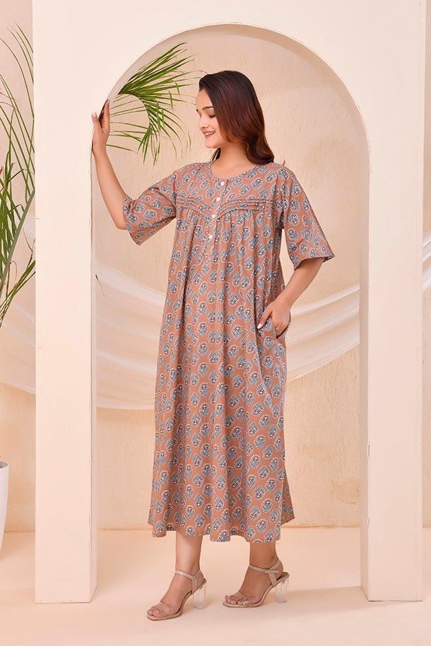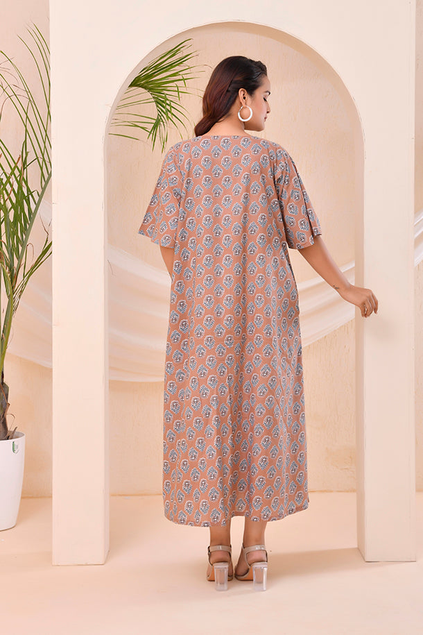 Brown Floral Print Kafty Lounge Dress Brown Floral Print Kafty Lounge Dress