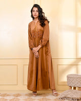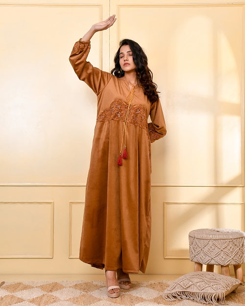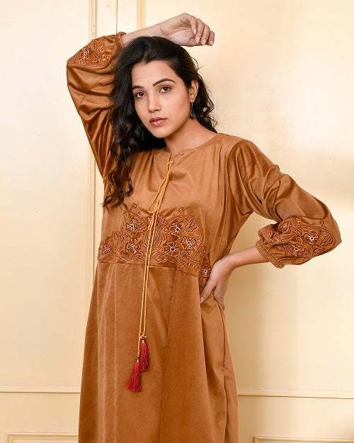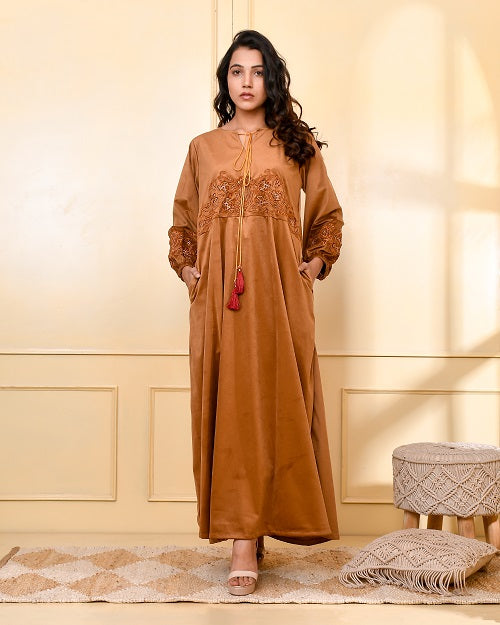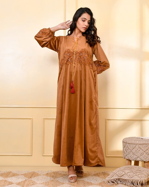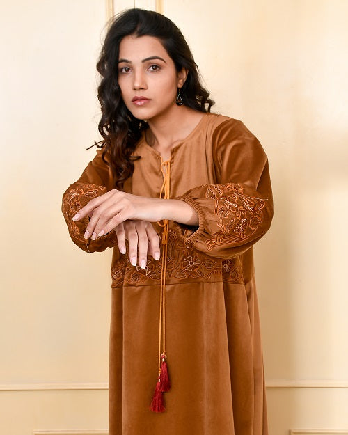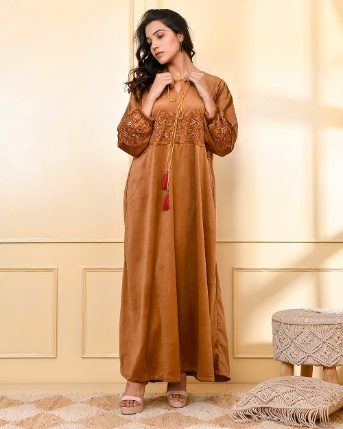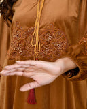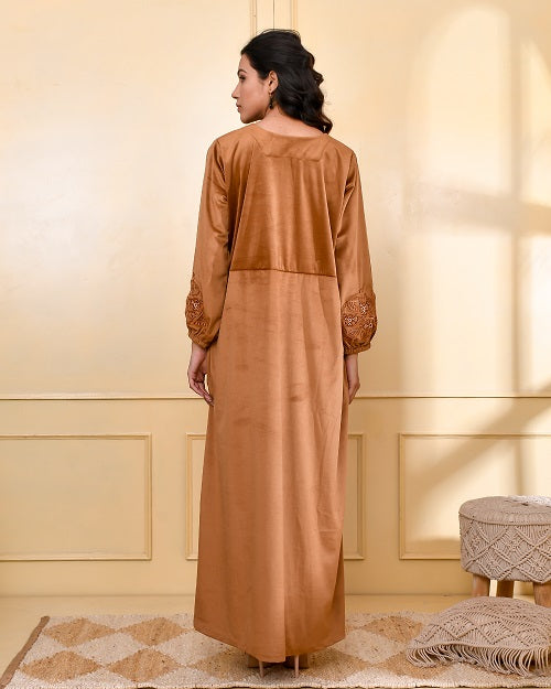 CAMEL BROWN EMBROIDERED VELVET NIGHTY CAMEL BROWN EMBROIDERED VELVET NIGHTY