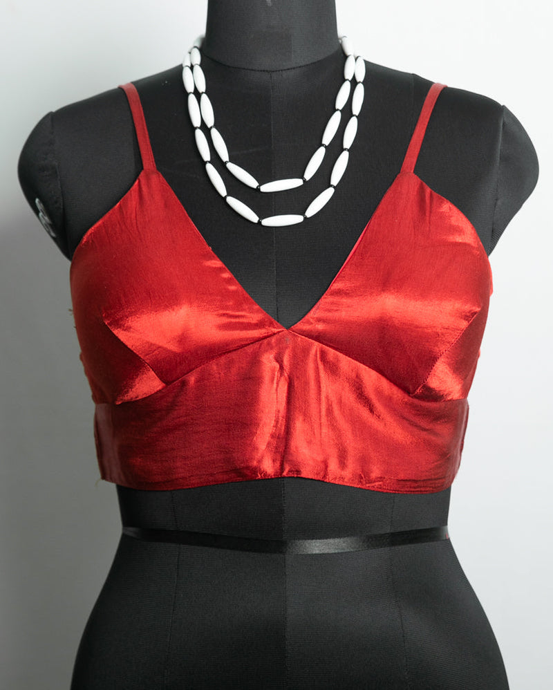 Cocktail Red Mushroo Silk Spaghetti Bralette Blouse Cocktail Red Mushroo Silk Spaghetti Bralette Blouse