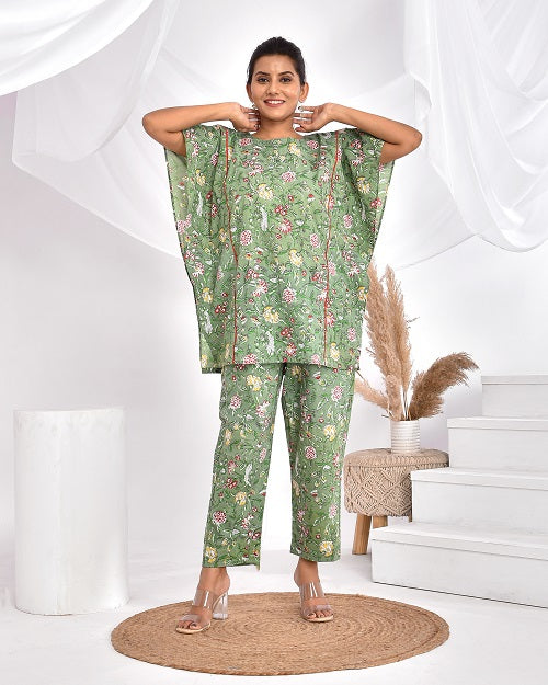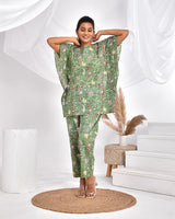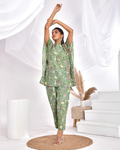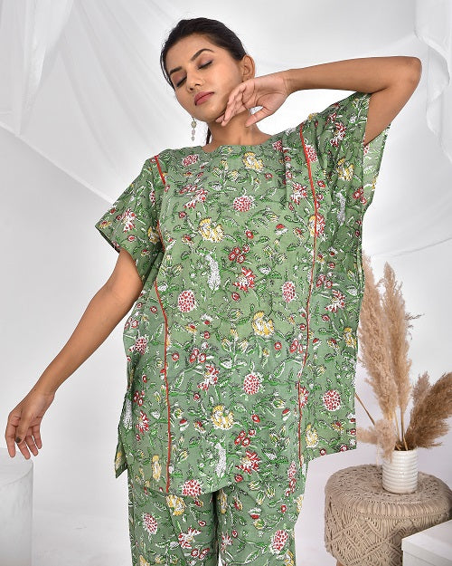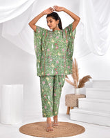 Green Floral Cotton Loungewear Coord Set Green Floral Cotton Loungewear Coord Set