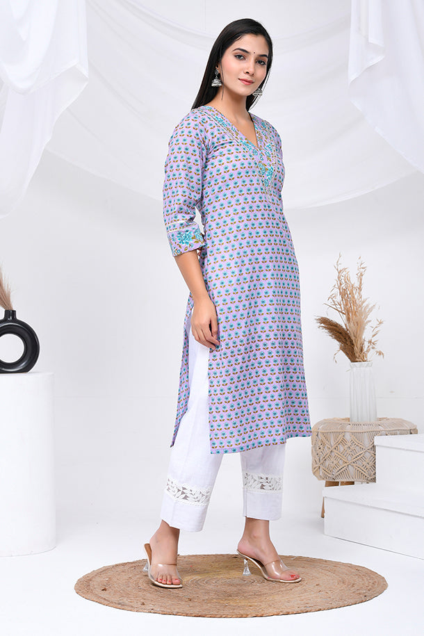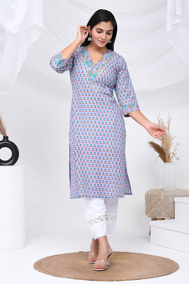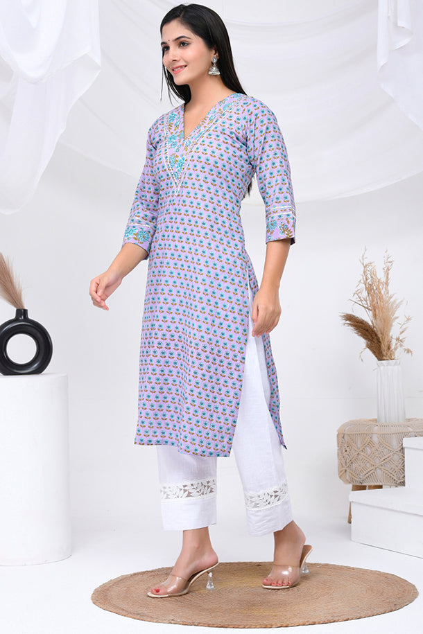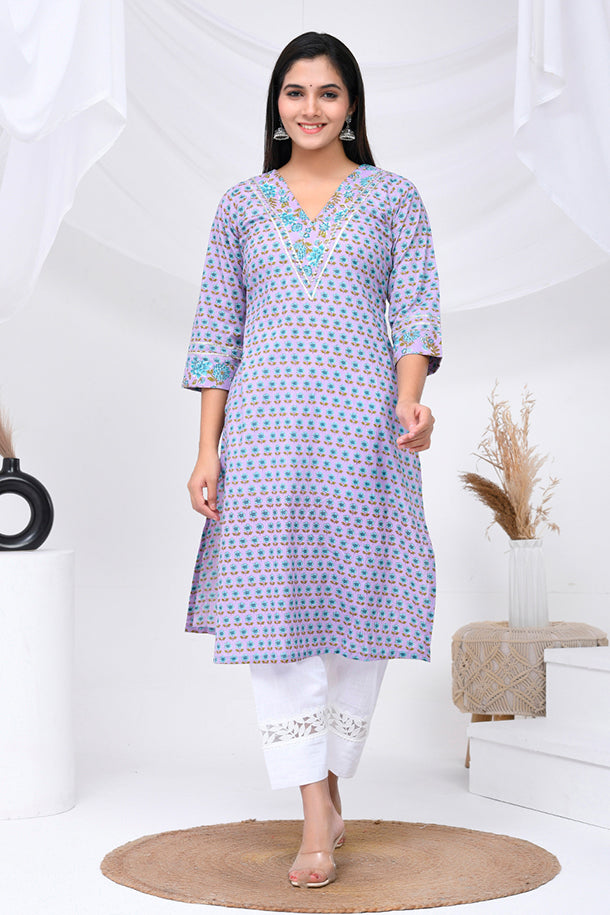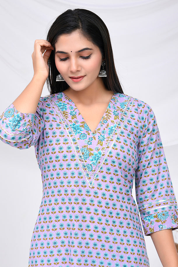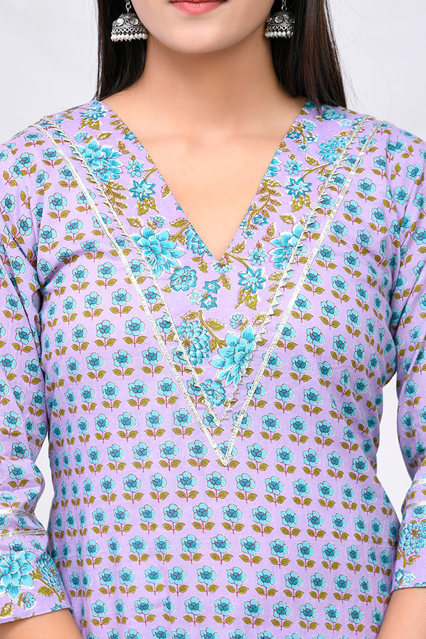Lilac Floral Print Cotton Kurta Lilac Floral Print Cotton Kurta
