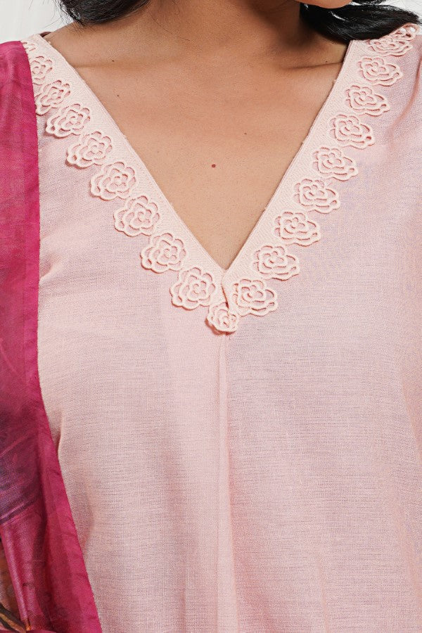 Nude Pink Cotton Tropical Print Kurta Set Nude Pink Cotton Tropical Print Kurta Set